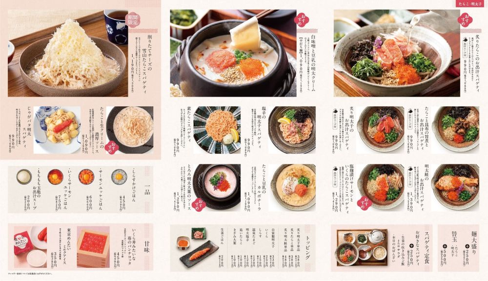 「東京たらこスパゲティ」は、頑張る女性を応援したいという想いで誕生しました。女性ひとりでも利用しやすい明るく清潔感のある空間で、親しみのある身近な「たらこスパゲティ」を今までにない提供スタイルと専門店ならではのこだわりによって磨かれた進化系たらこスパゲティとして提供します。