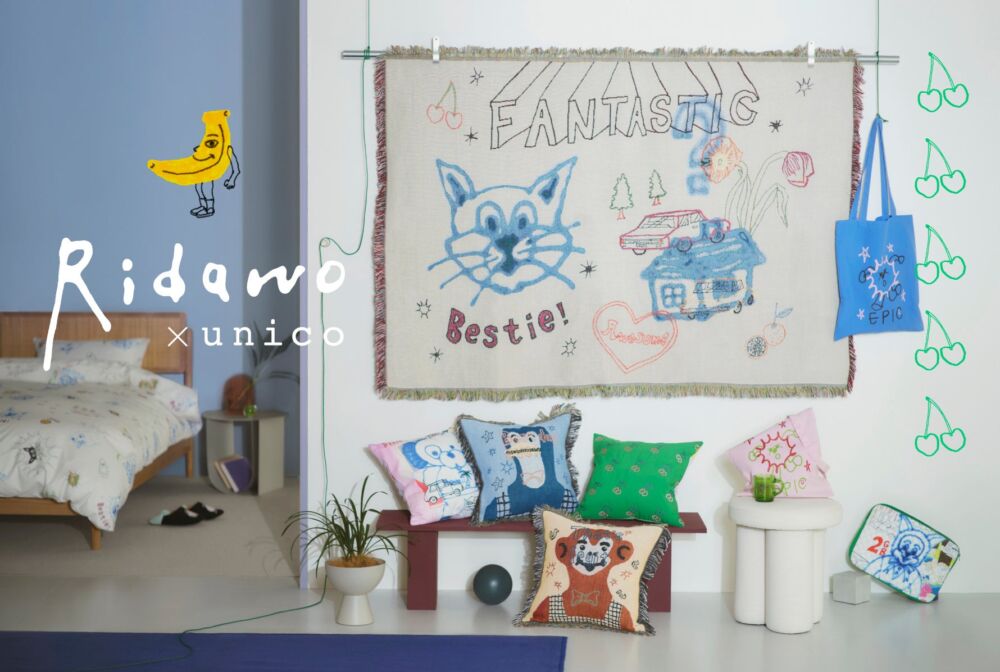 2025年4月4日(金)から、ライフスタイルショップ“unico”、“unico loom”はアーティストRidawoさんとコラボしたインテリアアイテムを発売します。