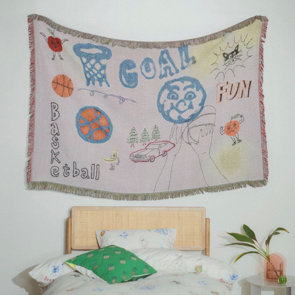 Ridawoさんのイラスト原画をそのままゴブラン織りのブランケットに。エッジの効いたスプレータッチのイラストが目を引くデザインです。デザインは全2種類。