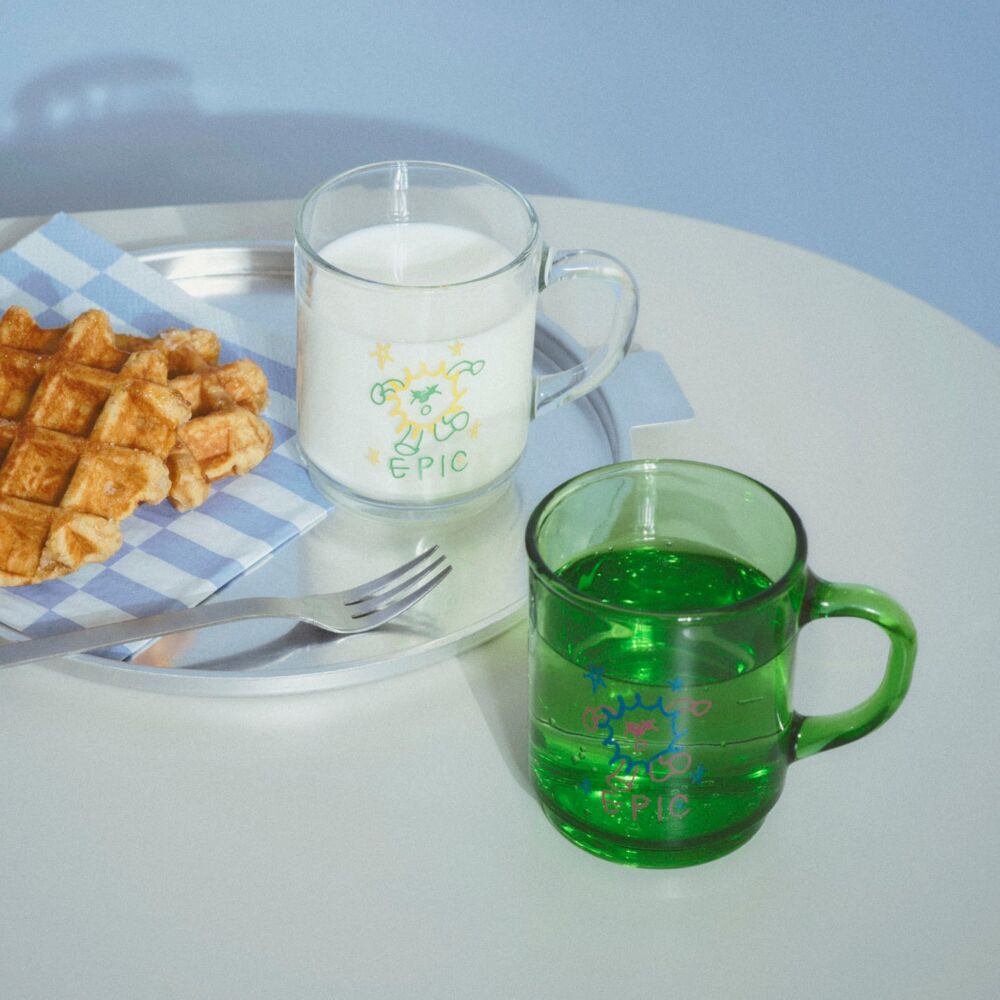 ポップなキャラクターを描いた、ソーダガラス製のマグカップ。カラフルなイラストが目を引くデザインです。全2色展開。