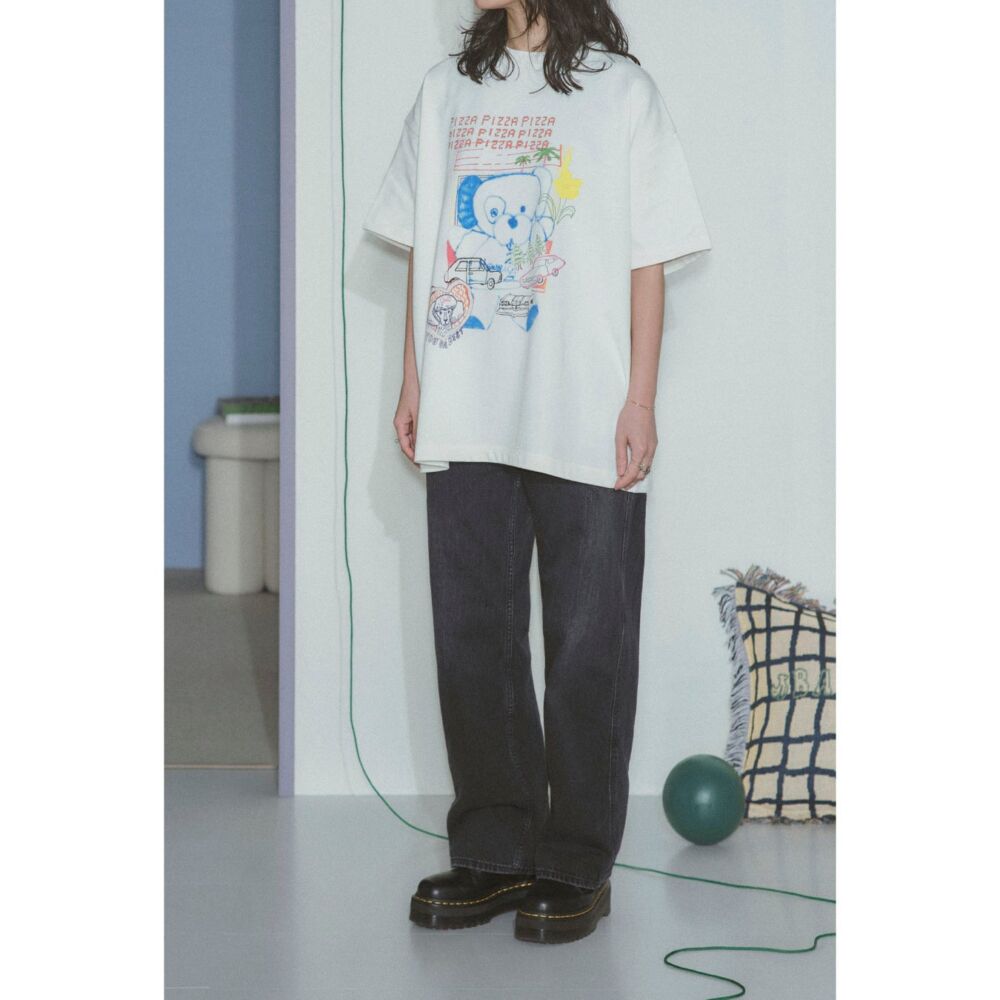 Ridawoさんの、ストリート感のあるポップでカラフルなイラストをプリントしたTシャツ。オーバーサイズのため、ダボっとルーズに着用可能。