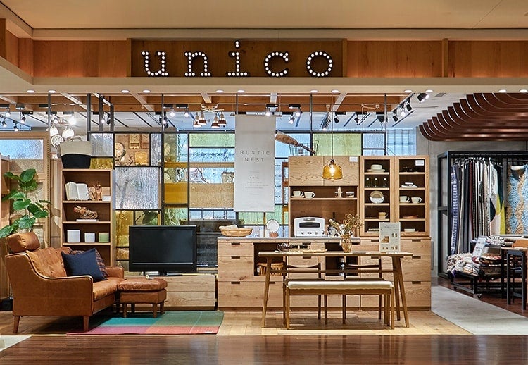 unico(ウニコ)とは、「たったひとつの」「大切な」などの意味を持つ言葉で、「自分らしくいられる心地良い空間づくり」をコンセプトとしたライフスタイルショップです。トレンドやニーズを取り入れたオリジナルの家具やファブリック、国内外からセレクトした雑貨などのアイテムを豊富に取りそろえています。