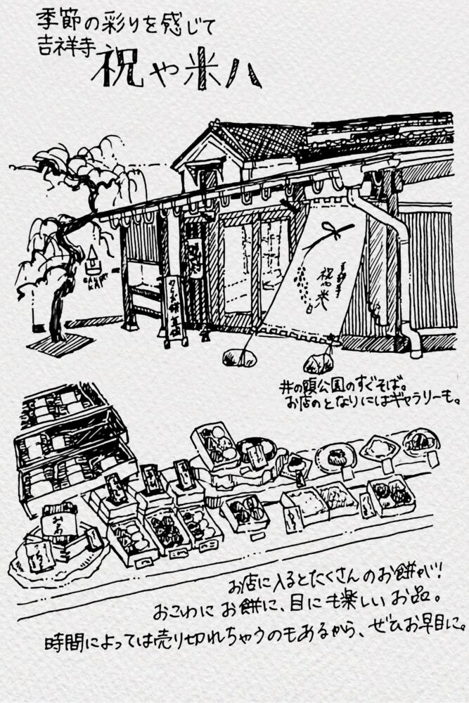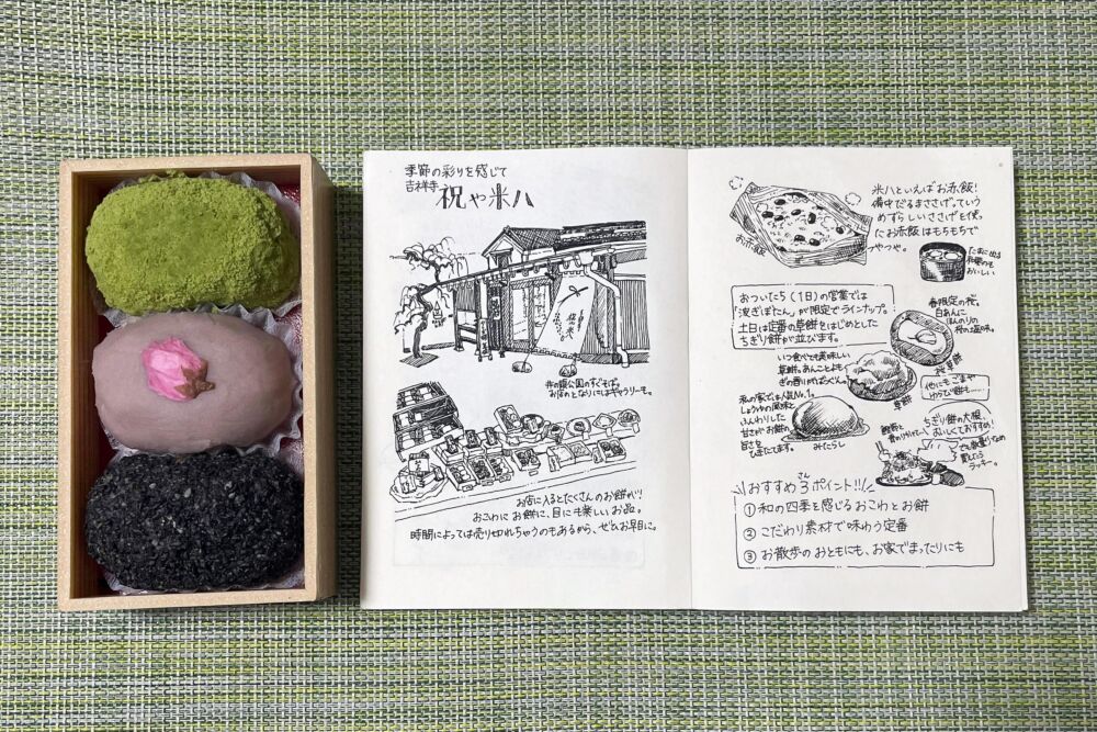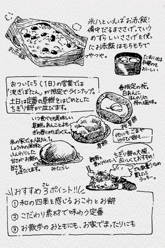 実は秋から今にかけて、すっかりはまってしまって何度も訪れているこのお店。たとえば、黒胡麻とみたらしのセットを買って秋の紅葉を見ながら井の頭公園のベンチで食べたり、生のし餅を買って帰っておうちでぜんざいにしてみたり。鰹節と青のりが香るちぎり餅の大根はとっても美味しいんだけど、数量限定だから秘密にしておきたかったり。予定が合わなくて買いに行けず、また今年のその季節を狙っているお餅やおこわもたくさんあります。次の季節のお餅とおこわはなんだろうな、そんな折々の楽しみになっているお店が祝や米八さんなのです。