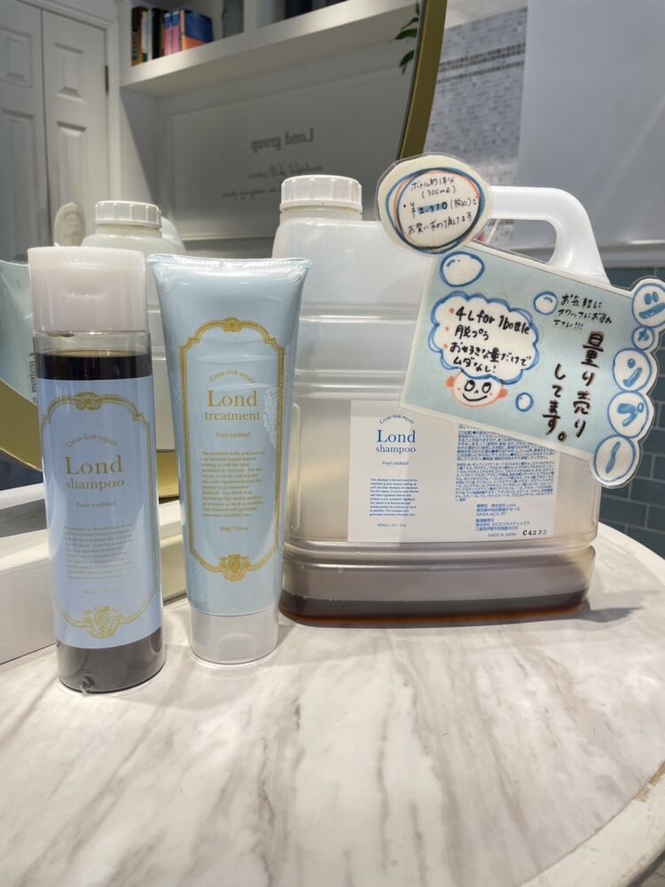 Londオリジナルシャンプーを4Lのリフィルにして量り売りをしています。フタ付きのボトルを持参するだけでOK!