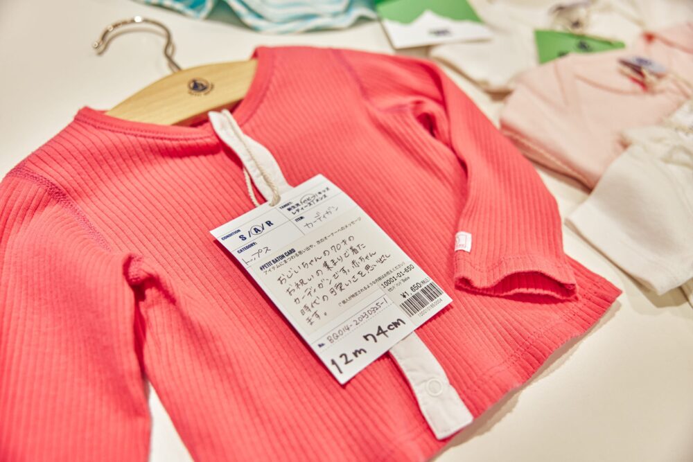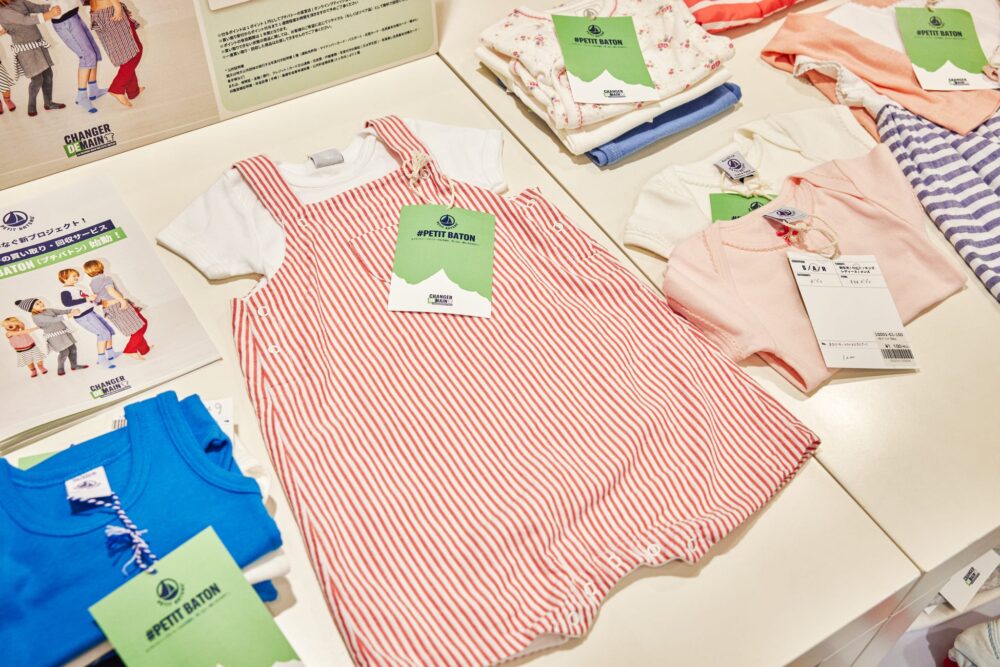 「#プチバトン」は、お客さまの着なくなったプチバトーの洋服を思い出と一緒に次の世代へ受け継ぐサービスです。まだ着られるのにサイズが合わなくなったり、好みが変わってタンスに眠ったままになったりしている洋服を対象店舗に持ち込むと、状態に応じてプチバトーでの買物で使用できるポイントで買い取り、もしくは無料で回収してくれます。買い取り・回収された洋服はプチバトーにて、リセールもしくはリサイクルされます。また商品にまつわる思い出や次の持ち主にむけたメッセージを添えられるもの人気のポイントです。