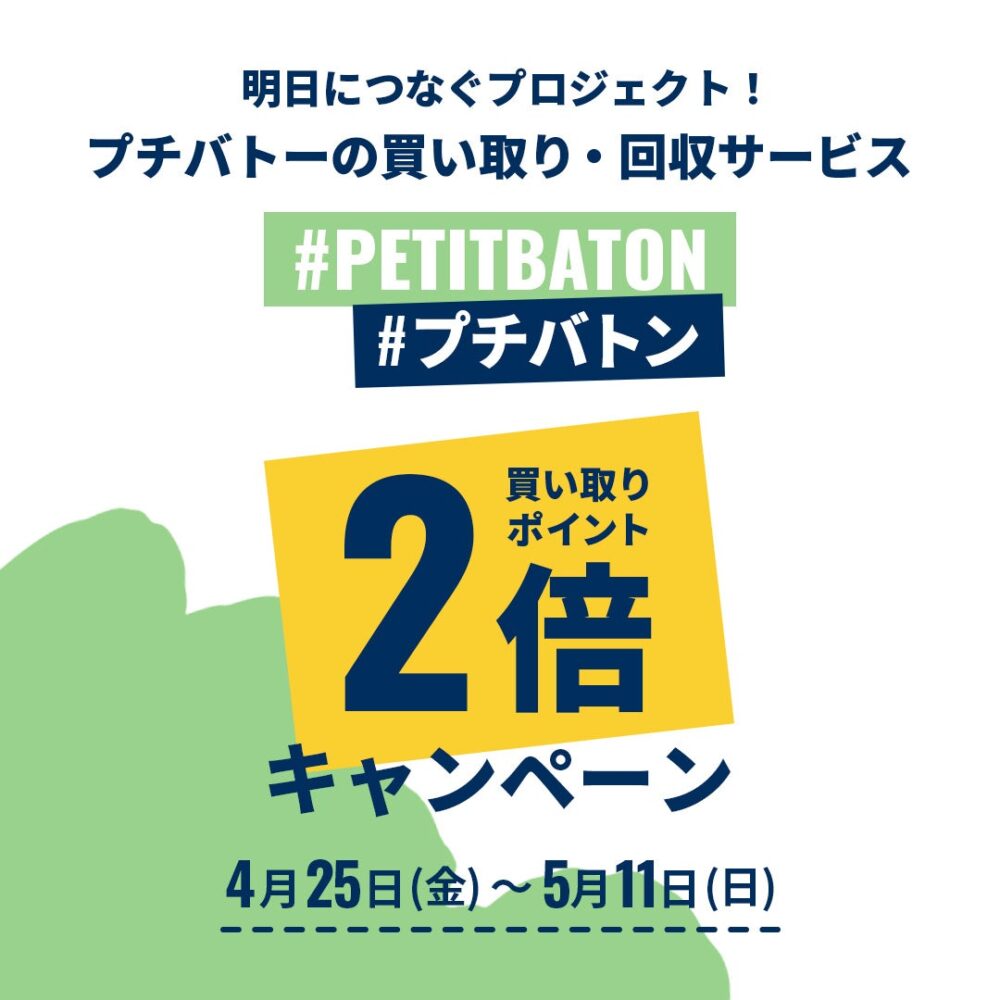 今回のキャンペーンは、ゴミの日(5月3日)を含む2025年4月25日(金)から5月11日(日)の期間中、プチバトン回収店舗での買い取りポイントが2倍になります。衣替えのこの時期、活用できそうですね。