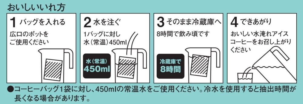 また、COFFEE STYLE UCCでは8時間の抽出時間を推奨していますが、好みで抽出時間を変えて楽しむこともできます。