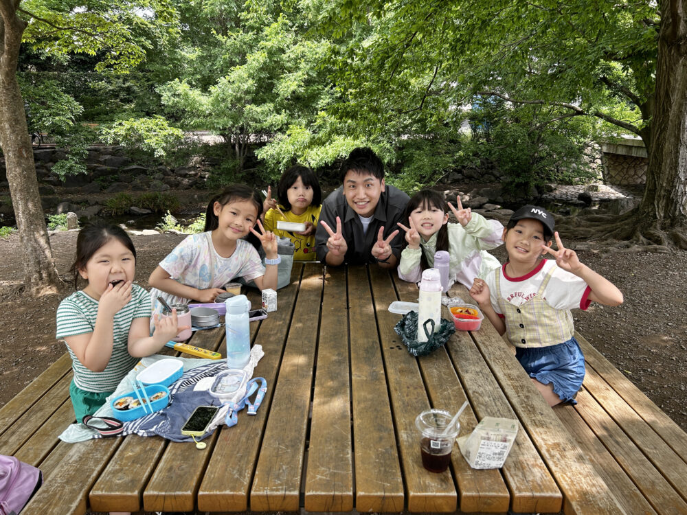 一緒にランチをとったのは“たっちゃん”こと吉祥寺校のスクールディレクター(校長)・萩原さん。2024年に行われたヒロックのサマースクールをきっかけに運営に関わりはじめました。それ以前は静岡で小中学校の教員を9年、その後、現「オンラインHILLOCK」の前身となる会社「Qilot(キュイロット)」を立ち上げたそうです。