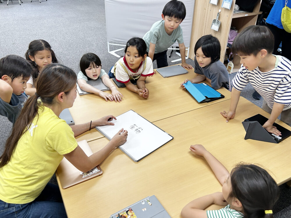 ランチの後は1〜2年生のクラスに混ざって「生物」の授業へ。シェルパは“エミリー”の愛称で呼ばれている野口さん。まずは「生物にはどんな種類があるのか?」をみんなで考えます。
