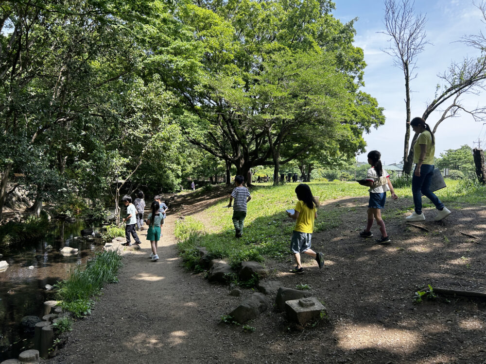 考えを深めたあとは、実際に外に出て「生物」を探しに出かけます。もちろん行き先は井の頭公園。目の前に広がる自然そのものが、まさに“教科書”です。こんな授業なら、夢中になってしまいそう!