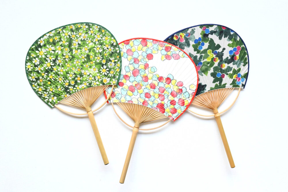 傘に使っている生地を職人さんがうちわの芯に貼ってくれているそうで、素敵な柄と職人技がコラボする特別なアイテムになっています。