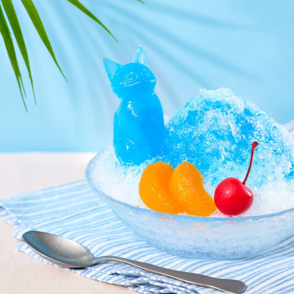 「ねこ型製氷トレー」は、お座りポーズの黒ねこ型の氷が4つ作れる、シリコン製の製氷トレーです。『カフェ・ベローチェ』の黒ねこをイメージした型に水を注ぎ、冷凍庫で凍らせるだけで、ちょこんと座った愛らしい“ねこ氷”が簡単に出来上がります。出来上がる氷のサイズは、横約3.5cm・縦約8.5cm。グラスに飲み物を注ぎ、“ねこ氷”を浮かべれば、写真映えする一杯が完成。さらに、お好みのジュースを使えばカラフルなねこ氷を、ゼリーや寒天を流し入れれば、可愛い猫スイーツも作れます。おうち時間に特別な“ねこアレンジ”を。お好きな猫スイーツづくりをぜひ楽しんでください。