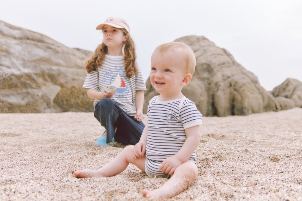 海や自然を愛する2つのブランドが出会い生まれたコレクションは、プチバトーが1893年から培ってきたノウハウから生まれた心地よいTシャツやパジャマに、WIND AND SEAのグラフィックをプリントしたモダンなコレクションです。両ブランドのユニークなアイデンティティを掛け合わせて生まれたアイテムは、ベビーからキッズまでお揃いで着られます。