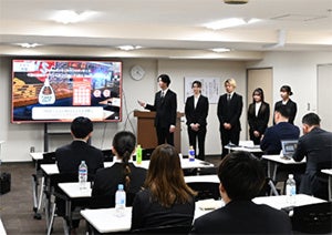 今回のプロジェクトは2024年9⽉に始まりました。12⽉下旬には学⽣5チームがシェーキーズ各店舗向けの提案メニューについて、多くの関係者の前で最終プレゼンテーションを⾏ったそう。各チームは、担当店舗での現地調査やヒアリング、競合分析などを通じて、ターゲット層へのアプローチや販売戦略を含めたオリジナルメニューを提案しました。