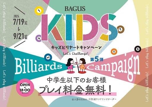 ビリヤードを楽しめるバグースは、2025年7月19日(土)から『キッズビリヤードキャンペーン』を開催。夏季限定のビリヤードをイメージしたオリジナルドリンクも販売されます。