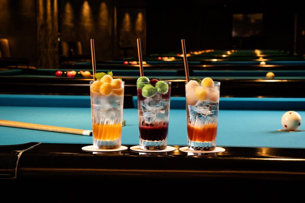 7月19日(土)~ 8月31日(日)の期間は、キッズビリヤードキャンペーンにあわせて、ビリヤードをモチーフにしたオリジナルドリンク「ブレイクショット・ソーダ」が販売されます。カラフルなアイスボールをビリヤードの球に見立て、マドラーで“撞いて”楽しむユニークな一杯です。