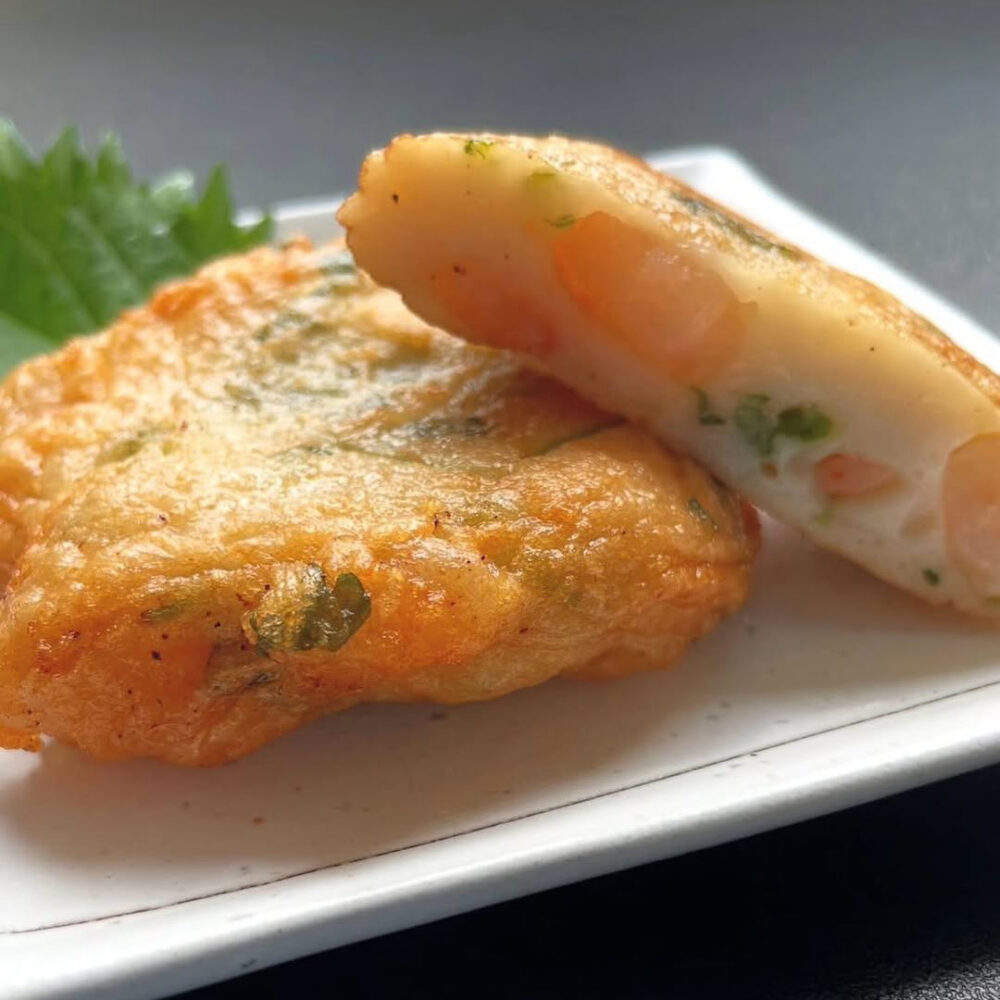 プリプリの海老に、ビタミンやミネラル、食物繊維がたっぷりの三つ葉を合わせた夏限定のさつま揚げ。食欲増進効果もあるので、夏バテ対策にもおすすめです。