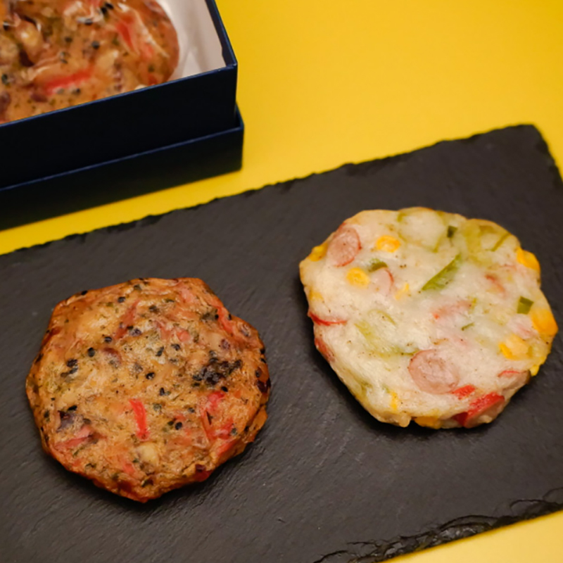 海老、いか、旬の野菜、ごぼう、ねぎ、チーズ、きくらげなど、約40種類の具材の中から好みの材料を自由に組み合わせて、オリジナルのさつま揚げが作れます。組み合わせは最大4種類まで選べます。