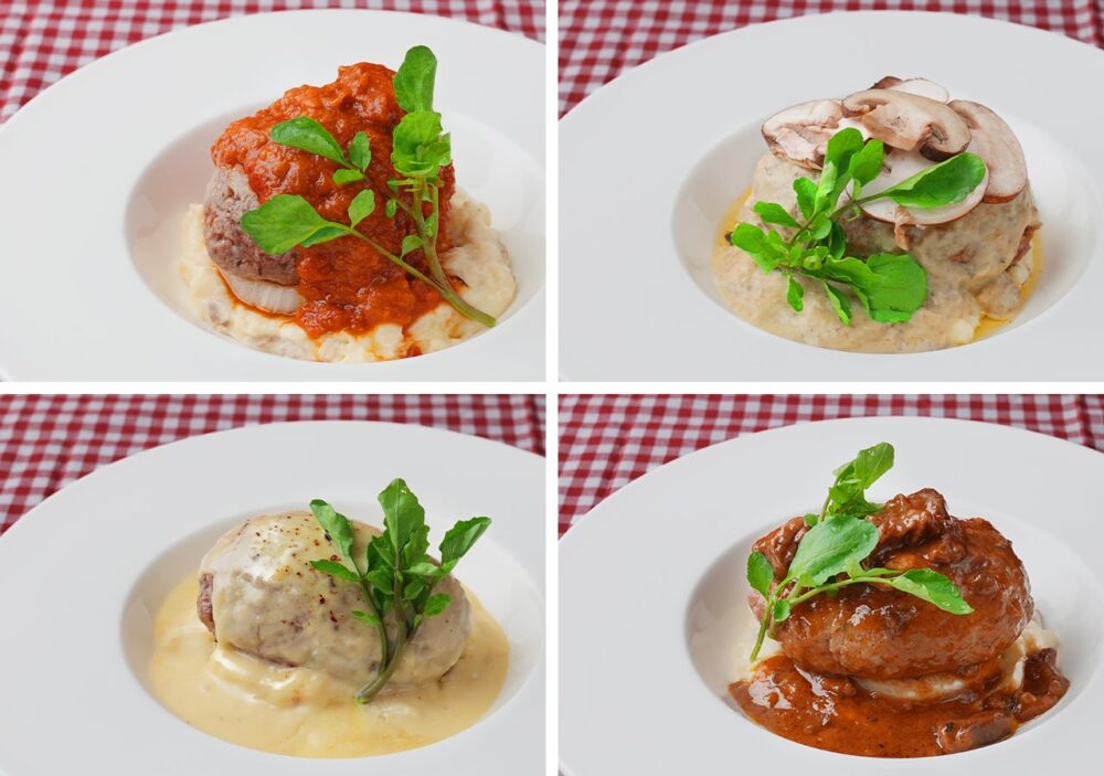 さらに、元カジュアルフレンチ店のノウハウを生かした「合い挽き肉のソースハンバーグ」4種も登場します。