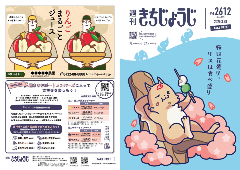 週刊きちじょうじは情報を載せるだけ・読むだけのメディアではありません。地元の人が温かくて、街に活気があって、自然も豊かな吉祥寺を、みなさんのチカラを少しづつ集めて守り、応援し続けていきたいと思っています。