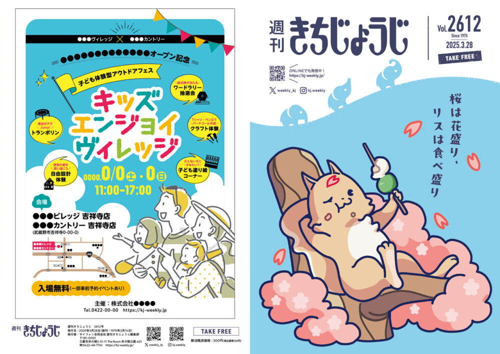 毎週3,000部を配布している紙版「週刊きちじょうじ」では、広告出稿をすることができます。紙媒体としては、表紙の次に目立つ場所といわれている裏表紙(表4)に、1ページか1/2ページの枠で純広告の掲載が可能!