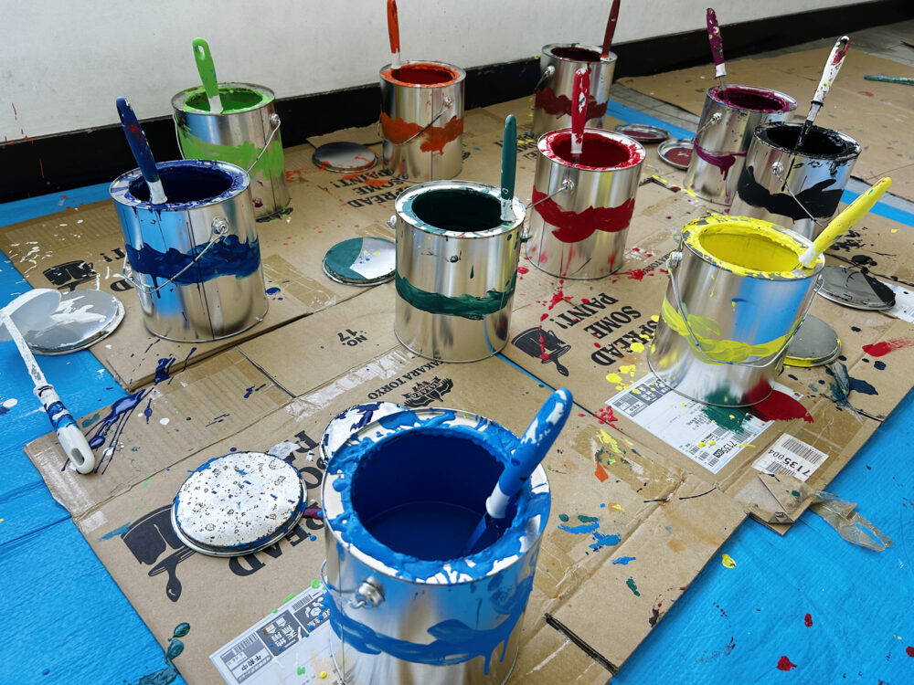 ペンキをたくさん用意してガシガシ描いていきます!