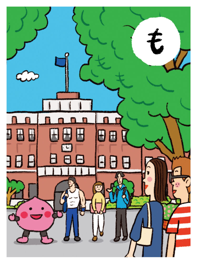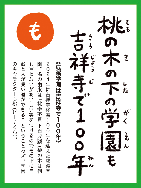 新札絵札「も」:桃の木の下の学園も 吉祥寺で100年