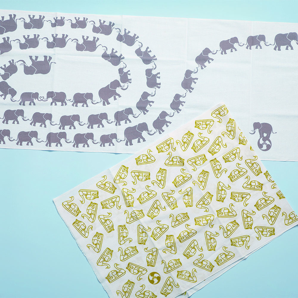 【吉祥寺】手染め手ぬぐい屋ともぞう本舗 手染め手ぬぐい 「象」「スワンボート」