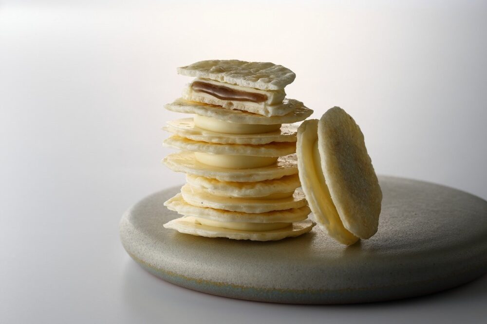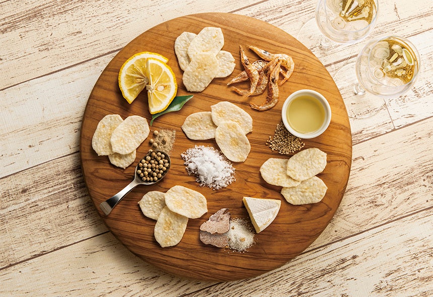 極薄ひとくちサイズのしろえびせんべいに、選び抜かれたこだわりの洋素材・白素材を使用。
