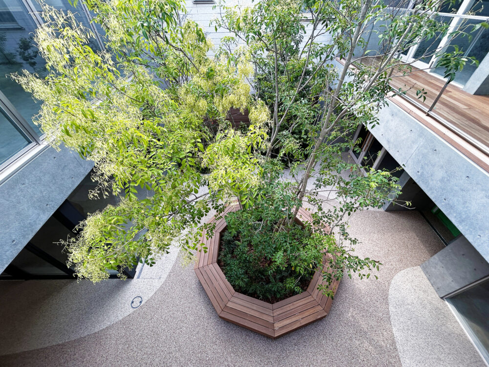 建物の計画・運営をするのは、地元に根ざした不動産会社「リベスト」。吉祥寺っ子にはおなじみの存在ですよね! NAKAMICHI GARDENの魅力は、なんといっても建物の真ん中に広がる緑あふれるオープンな中庭。ベンチに座ってのんびり過ごしたり、テイクアウトしたごはんをお庭で楽しんだりと、自由にくつろげる憩いの場になる予定です。