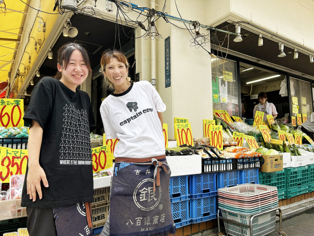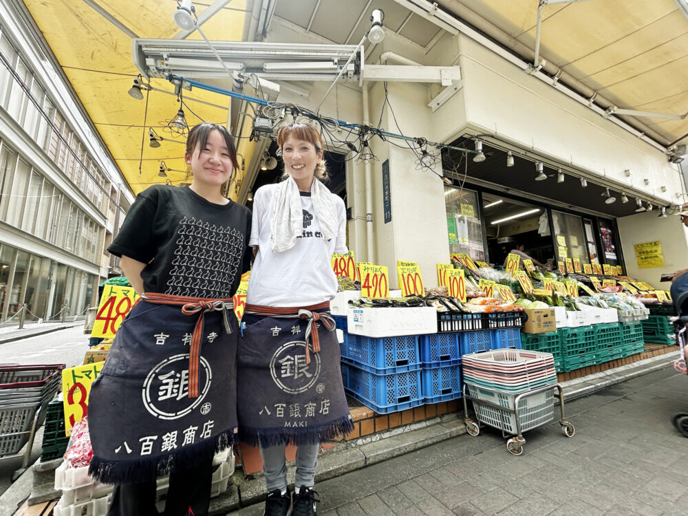 八百銀商店の魅力は、新鮮な野菜や果物だけではありません。それを売るスタッフのみなさんの元気の良さも大きな魅力です。「うちには最低限のマニュアルしかなくて、働いている人がそれぞれのカラーを出せるんです」とマキさん。