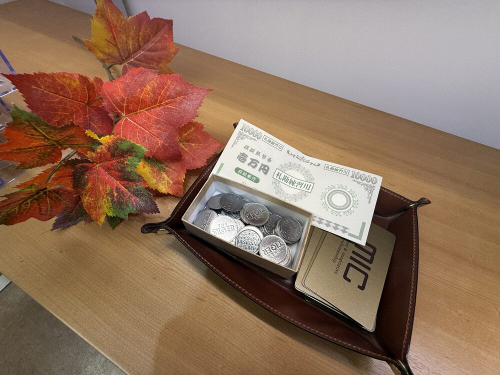そして、製品を選ぶ人の立場をちゃんと考えてくれている、こんなアイテムも。現金やカードが入ったとき、どんな使い勝手になるか、その場でお試しができます。