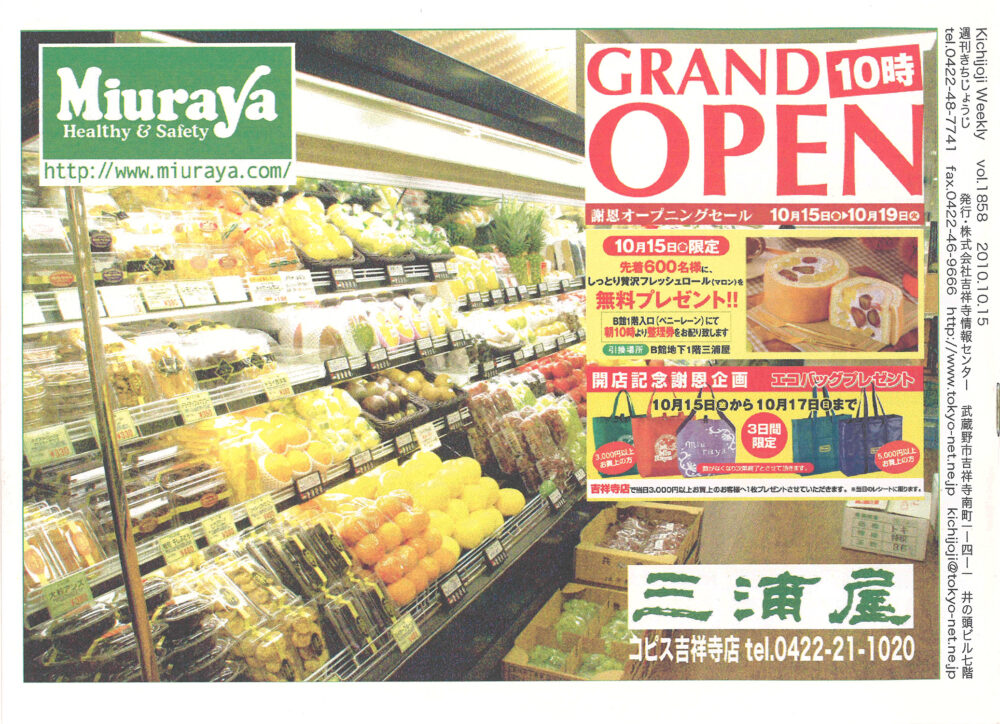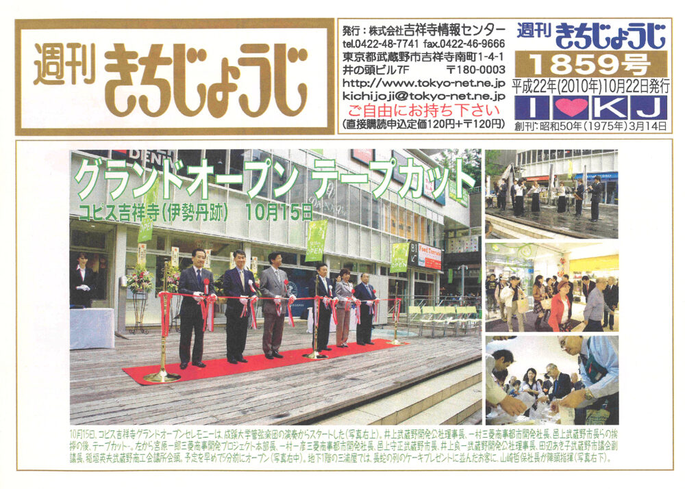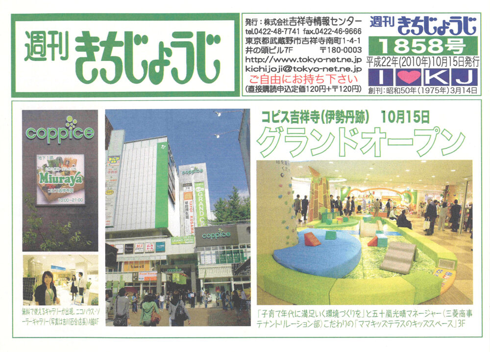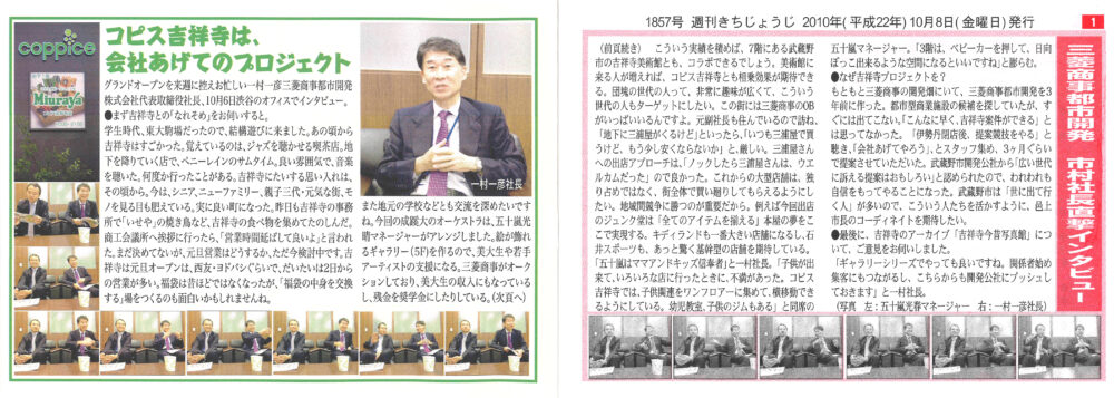 実は週刊きちじょうじでも、取材記事を掲載していました!そこには「三浦屋」やキッズスペースの様子、そして運営会社である三菱商事都市開発株式会社の社長インタビューも掲載。当時の紙面を見返すと、地域に根差した施設を目指す熱意が伝わってきます。
