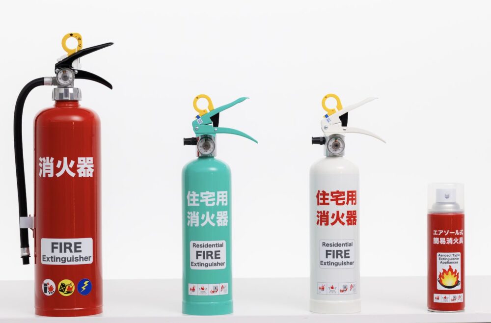 公共施設やマンションに設置されている消火器のほかに、住宅用消火器、エアゾール式簡易消火具があり、ホームセンターなどで購入が可能です。