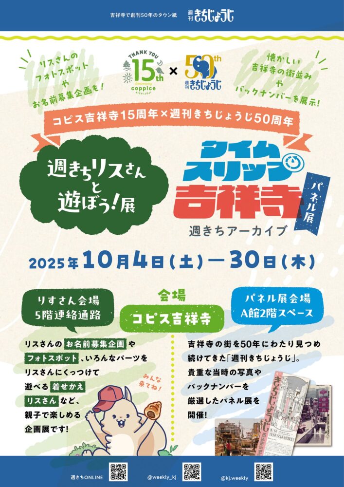 コピス吉祥寺の15周年を記念して、「コピス吉祥寺」と「週刊きちじょうじ」がワクワクのコラボイベントを開催中です! 期間は2025年10月30日(木)まで。