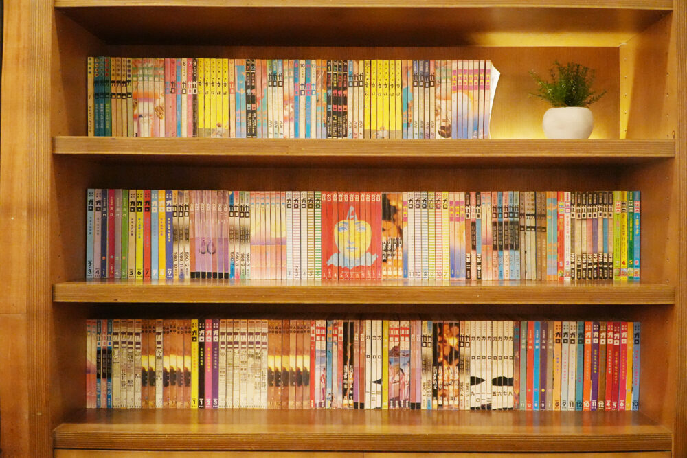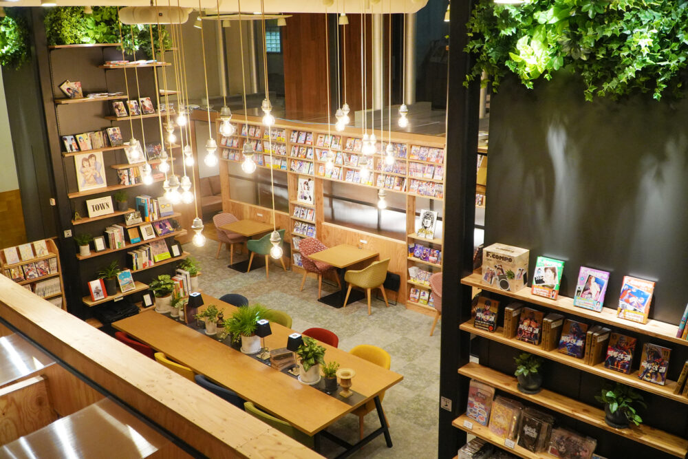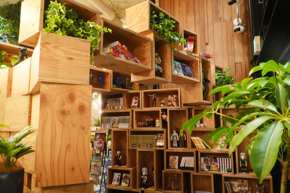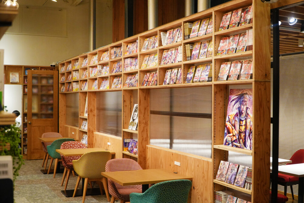 Toggle漫画やフィギュアなどが飾られた印象的なゲートをくぐると、アートブックや漫画本に囲まれた心地よい空間が広がります。