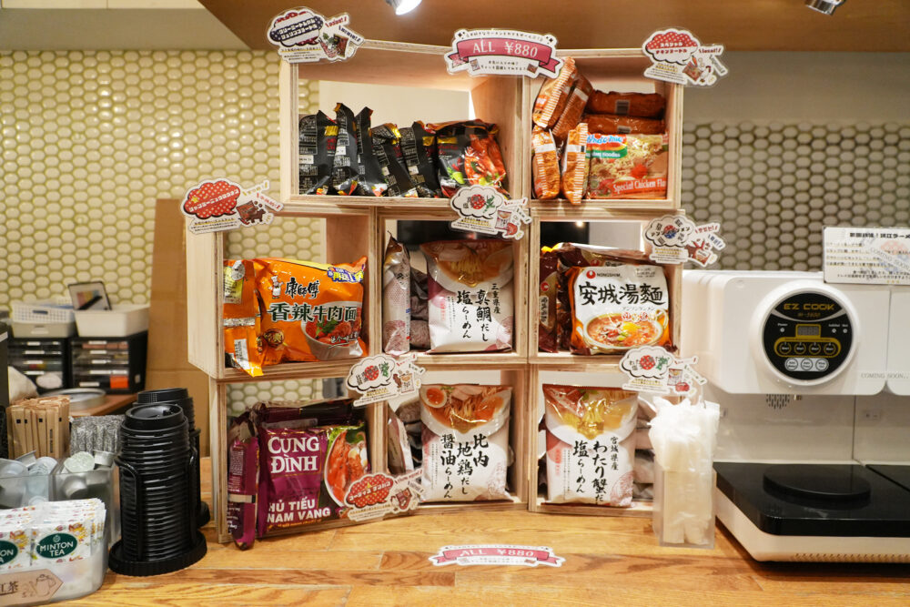 ドリンクやスナックはすべてフリー。さらに、有料で使える「ラーメン調理器」まで完備されていて、創作の合間にちょっとした“袋麺タイム”も楽しめます。Wi-Fiや電源も完備で、長時間の作業も安心です。