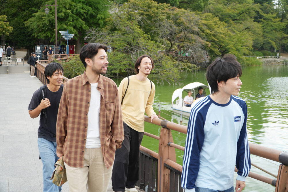 吉祥寺での思い出やアルバムへの想いをたっぷり語ってもらったところで、せっかくなのでバンドのみなさんと一緒に吉祥寺をお散歩! 歩きながら思い出話にも花が咲いて、とても楽しいインタビューになりました。