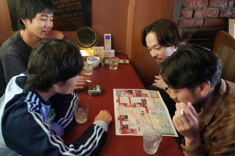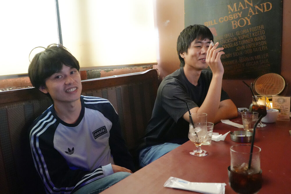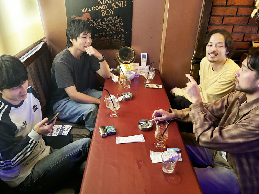 実はグソクムズの2020年からの音源は、吉祥寺のカフェバー「HOME PLANET」のレーベルからリリースされたもの。当時はよく“ホムプラ”ならぬ“ホープラ”に集まり、腕ずもう大会をしていたとか。「当時はお金がないから、Tシャツが1種類しか出せなくて。何色にするかとかでよくケンカしていました(笑)。いま思えばあれが大事だったんでしょうね」とたなかさん。