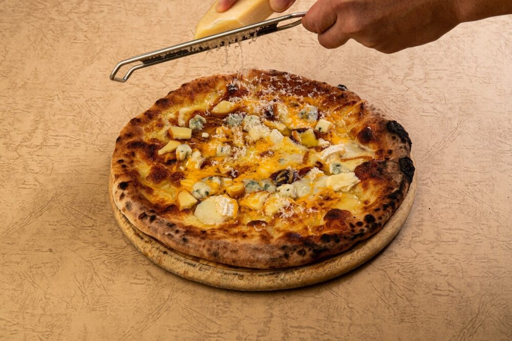 削りたてチーズのおいしさをすぐに届けたい!との想いで、作ってくれます。リトアニア産デュガスチーズとトリュフの風味で贅沢な味わい。
