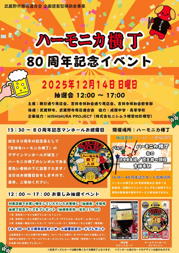 吉祥寺の名物スポット「ハーモニカ横丁」が、2025年に誕生80周年を迎えます。これを記念して、2025年12月14日(日)に特別イベントが開催されます。