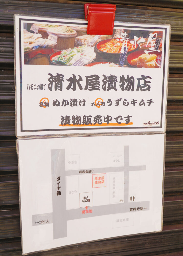 現在、清水屋は17時まで漬物店として営業し、その後は次男が立ち飲み屋として店先を使い、裏手では長男(4代目)が「漬物バー 4328」を切り盛りしています。