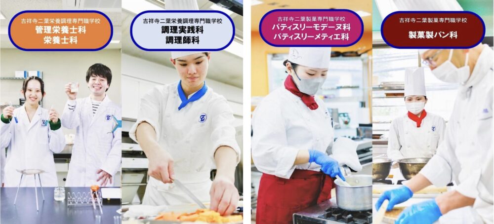 吉祥寺二葉栄養調理専門職学校と吉祥寺二葉製菓専門職学校は、調理・栄養・製菓など「食」と「健康」に関わる実践的なスキルを学べることから人気を集めている専門学校です。
