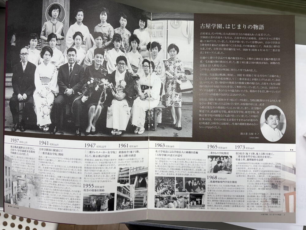 当時、女性が自立することが難しかった時代に、洋裁という技術を通して「自分の力で生きる道」を示した古屋キノさん。手芸品や生地の販売をしながら、注文服の製造や編み物教室などを開催していました。やがて教室は学校へと発展し、生徒数も次第に増えていきます。