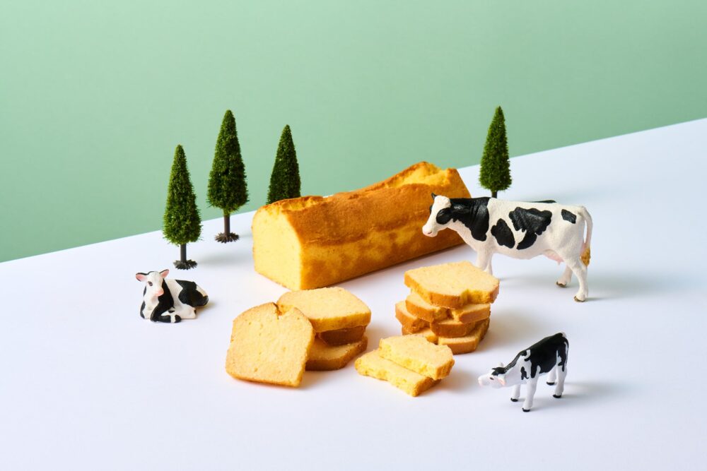 ミルク風味溢れるパウンドケーキを焼き上げ、一枚ずつカット。更にラスクに仕上げる為、もう一度オーブンへ。サクっと軽い食感と、表面のバター&ミルクパウダーがコク深いミルク風味を演出。ミルク好きにぜひ食べていただきたいミルクパウンドケーキのラスクです。