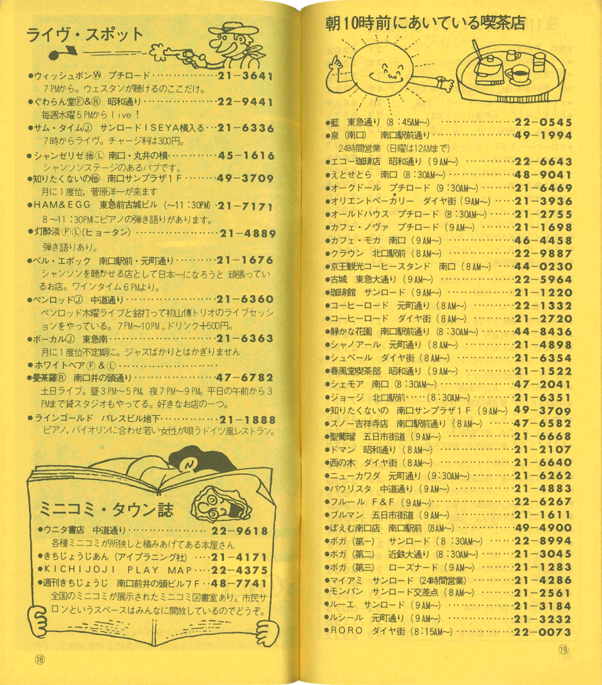 今回は趣向を変えて、「吉祥寺生活電話帳」第1号にタイムスリップ! かつて週きちの編集・発行をしていた「吉祥寺情報センター」時代による、吉祥寺版のイエローページです。