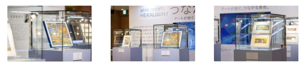 アトレ各店で順次開催される今回の巡回展。ヘラルボニーが主催する国際アートアワード「HERALBONY Art Prize 2025」において、企業賞である《JR 東日本賞》を受賞した作家・生田梨奈子氏の作品「つながる風景」の貴重な原画が展示されます。さらに、作家・生田氏の創造の軌跡をたどる過去作品群もあわせ、特製ショーケースでその繊細な世界観を間近で見ることができます。