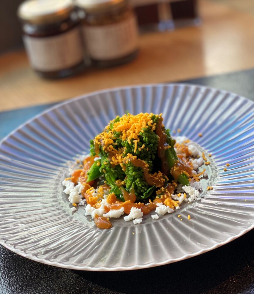 しょうゆもろみを加えた黄身酢で和えることで、まろやかな酸味と発酵のコクが楽しめます。