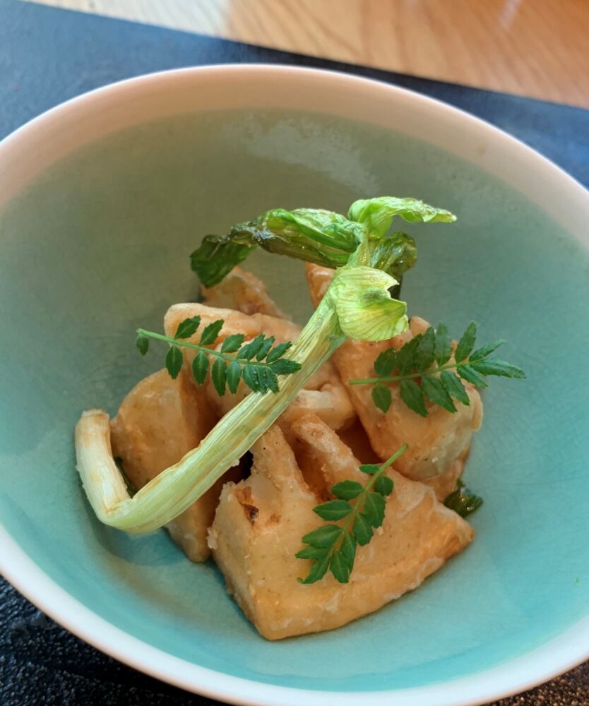 材料:ゆでたけのこ、行者ニンニク、木の芽、小麦粉、もろみ花椒