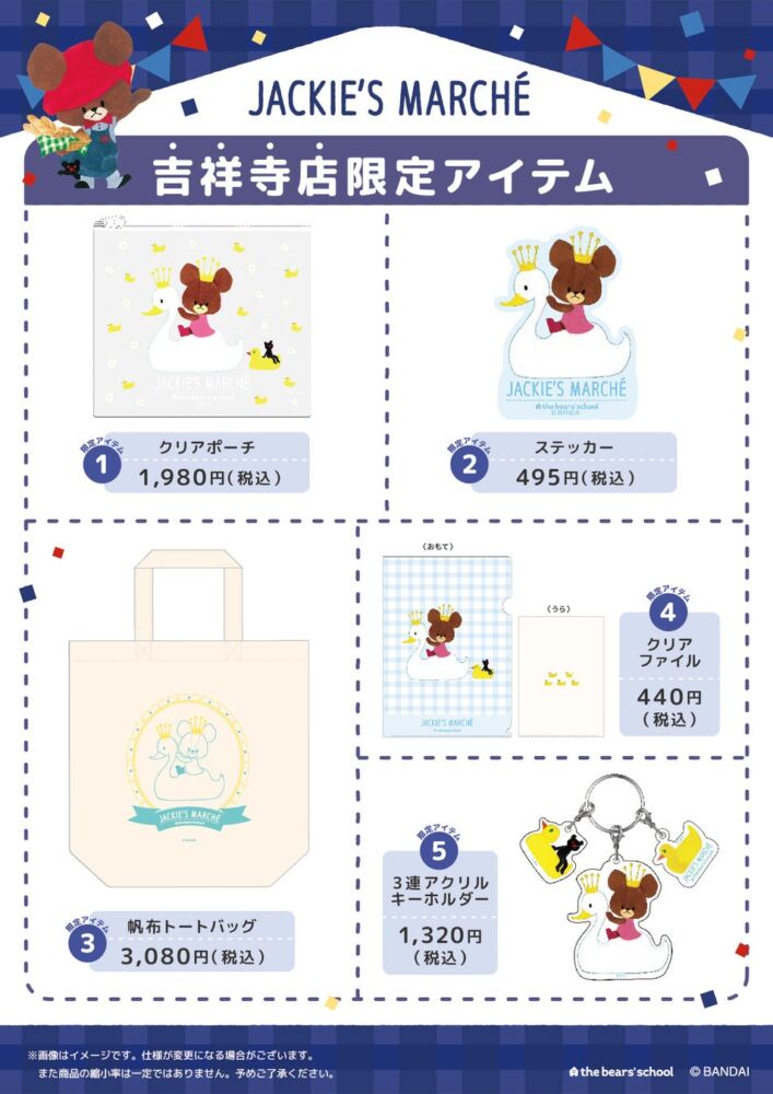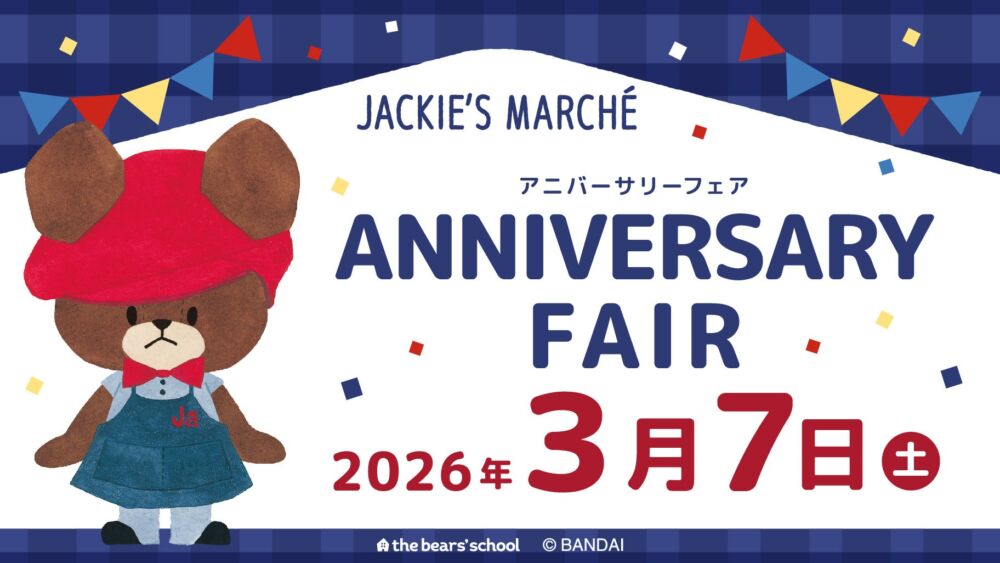 オープニングイベント【Jackie is here!】 開催日 2026年7日(土)・8日(日) お問い合わせ 0422-29-2150 会場 コピス吉祥寺〒180-0004 東京都武蔵野市吉祥寺本町1-11-5 Web https://the-bears-school.com X @the_bearsschool Facebook www.facebook.com/kumanogakkou Instagram @the_bears_school_official
